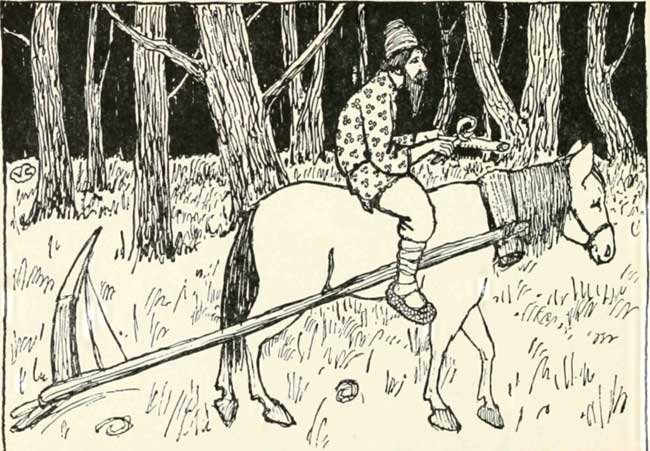rode along he threwdown the shavings one after the other, and a bear came and drew them all aside on to the path that led to his den. Then