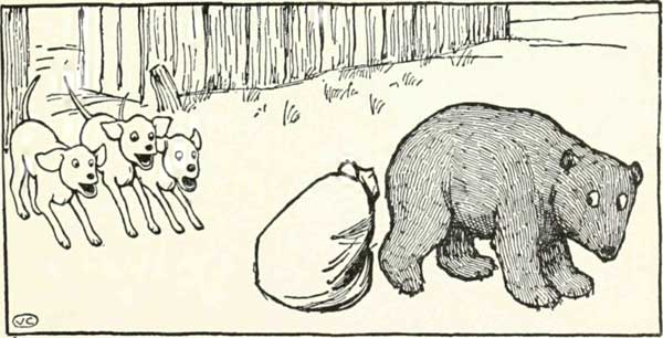all rushed out and began to bark at him! So he flung down the sack and